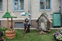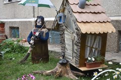 Городские дворы преображаются. Так, в доме № 4 микрорайона Центрального между подъездами №№ 12 и 13 поселилась сказка. Под окнами расположилась избушка Бабы Яги, тут же в ступе и сама сказочная гостья. Рядом свежей водой мерцает прудик с горбатым мостиком. Авторы этого дворового чуда − семья Серых. Прудик с мостиком они соорудили в начале лета. Мостик уже успели сломать, его пришлось чинили и заново красить. Вчера установили избушку и сказочную волшебницу. Сын Даниил сам построил домик Бабы Яги, для этого пришлось несколько раз ходить в лес за природным материалом. Равнодушным к творениям семьи не остался никто. Соседи и прохожие фотографируют ребятишек в сказочном дворике.