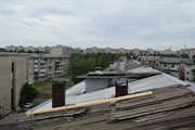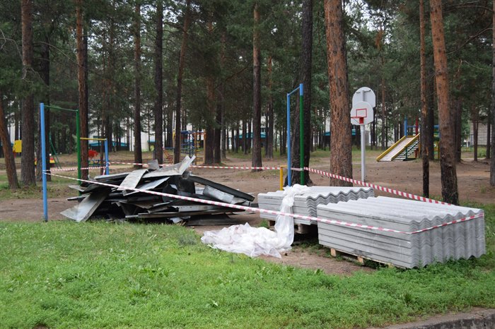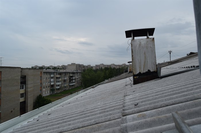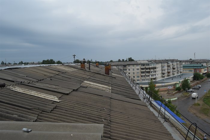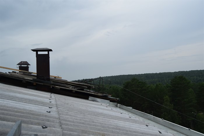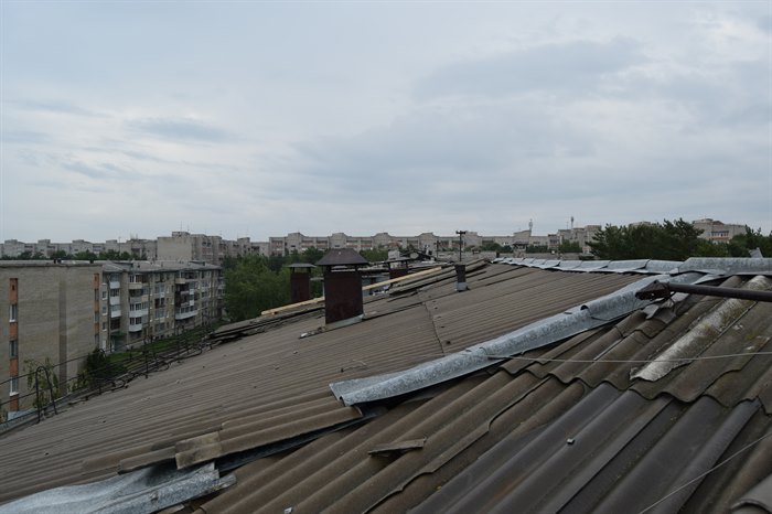 В настоящее время рабочие ремонтируют кровлю. Они снимают старое оцинкованное железо, сливы и устанавливают новый шифер. Часть работ уже сделана.