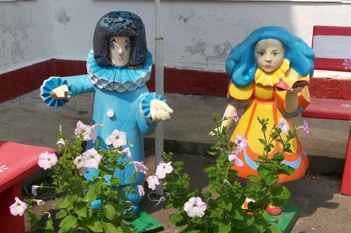 Центральное место в детском саду занимает сказочный уголок. Посетителей детского сада встречают Мальвина и Пьеро. А живут они под сказочным зонтиком.