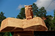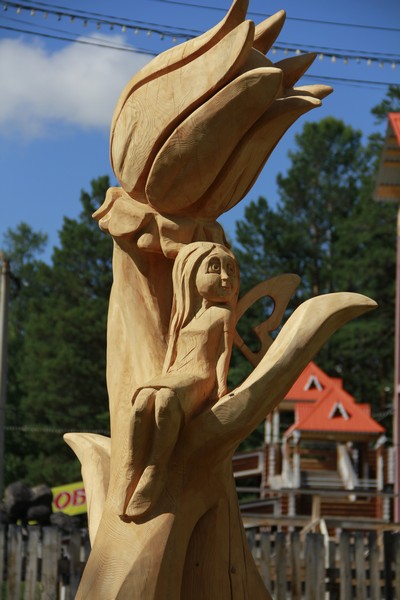 Золотые руки, широкая душа и добрые сердца мастеров деревянной скульптуры продолжили создавать сказку в нашем городе. В течение недели мастера «отсекали от дерева все лишнее», сегодня скульпторы завершили свои прекрасные творения и представили саянцам 12 сказочных героев.