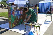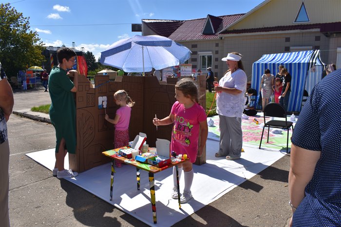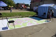 Работники культуры, традиционно, подготовили сразу несколько познавательно-развлекательных площадок. Юные художники с энтузиазмом раскрашивали макеты домов. На площадке «Юный архитектор» всем желающим предлагалось на огромной карте Саянска отыскать свой дом и «спроектировать» рядом с ним здания будущего, какие − как подскажет фантазия.