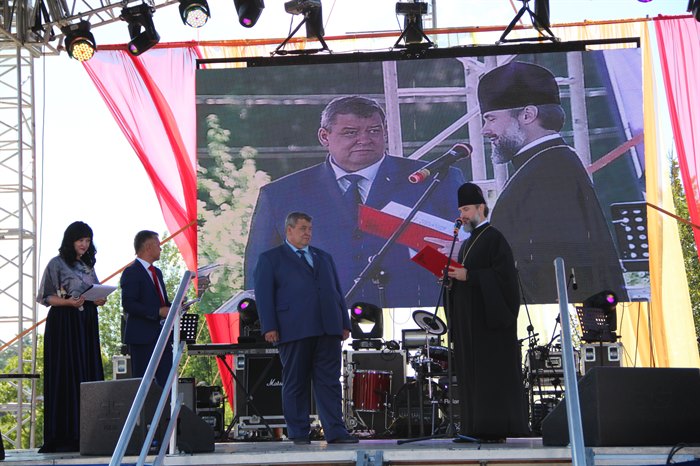 С Днем города поздравил саянцев епископ Саянский и Нижнеудинский Алексий, отметив, что это наш общий праздник, в котором торжество настоящего сочетается с перспективой будущего. У Саянска – большой потенциал, в котором – залог процветания нашего края. Развитие города, реализация его социально-экономического потенциала неотделимы от формирования крепкой нравственной основы городского общества. Для этого в Саянске делается немало. Владыка выразил благодарность за сотрудничество мэру Саянска Олегу Боровскому, управлению образования, саянским педагогам, работникам культуры и спорта, активно участвующим в подготовке и проведении просветительских мероприятий. Ведущие рассказали, что в этом году саянский храм Благовещения отмечает свой четвертьвековой юбилей, а в декабре этого года исполнится пять лет Саянской епархии и назначения на архиерейскую кафедру епископа Саянского и Нижнеудинского Алексия.