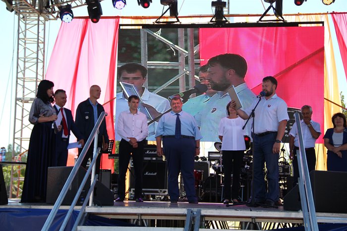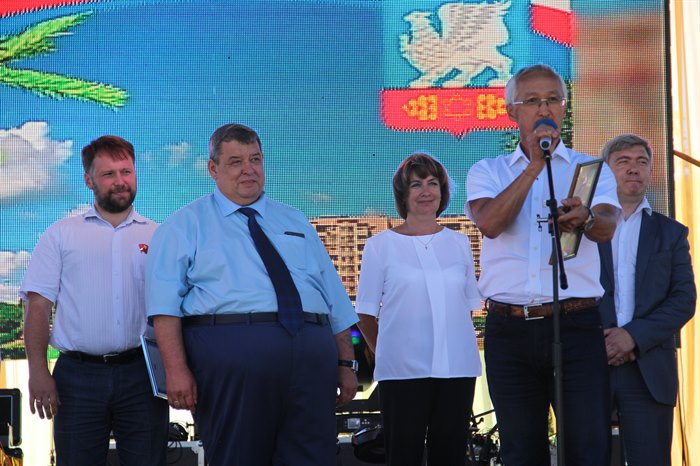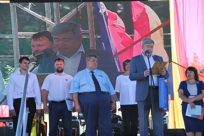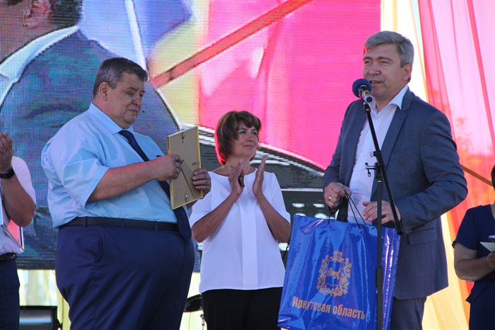 Генеральный директор ЗАО «Восток-Центр» Александр Сигал пожелал Саянску счастья, благополучия и дальнейшего процветания. Генеральный директор АО «Саянскхимпласт» Николай Мельник сказал, что этот год знаменателен для города юбилеями. Осенью свой 50-летний юбилей будет отмечать градообразующее предприятие. В 1974 году строительство Зиминского химического комбината было объявлено ударной областной комсомольской стройкой. Он поблагодарил строителей, создававших завод, химиков, вдохнувших в него жизнь и поддерживающих его развитие, несмотря на все трудности, и всех горожан, и отметил, что предприятие развивается, − «думаю, в ближайшие годы мы будем наблюдать значительный рост масштабов нашего производства».