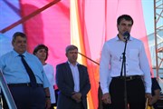 Гости праздника в своих приветствиях пожелали горожанам и мэру города Олегу Боровскому всех благ, развития и процветания Саянску. Начальник управления губернатора и правительства Иркутской области по региональной политике Владислав Наумов зачитал приветственный адрес губернатора Сергея Левченко, в котором, в частности, говорится: «Один из крупнейших отечественных центров химической промышленности, Саянск по праву называют самым молодым и благоустроенным городом Иркутской области, который славен своими трудовыми, культурными и спортивными традициями, и при этом обладает значительным потенциалом для дальнейшего роста. С каждым годом Саянск становится современней и уютней – благодаря совместным усилиям властей, бизнеса и самих горожан. От всей души хочу выразить слова благодарности вам, дорогие саянцы. Ваша инициатива, профессионализм, умение работать с полной отдачей сил – залог счастливого будущего города».