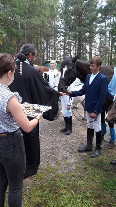 По народной традиции, в этот день лошадям дают отдых, их купают, украшают цветами, заплетают хвосты и гривы яркими лентами, кормят досыта отборным овсом. В их честь сегодня и на нашем саянском Конном дворике совершали церковные обряды. Хозяйки напекли печенье в форме подковы и угощали освящёнными лакомствами лошадей. Были соблюдены все традиции. После церемонии виновники торжества получили угощения.