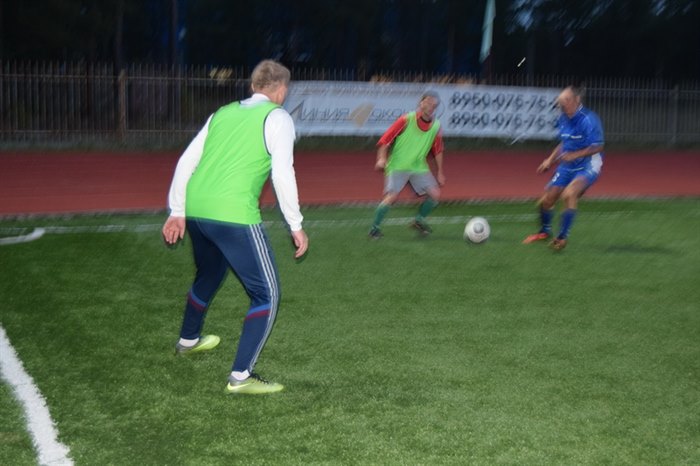 В первой игре встретились команды спортивного клуба «Непобедимый» и ветеранов «Саянскхимпласта». Сначала практически подряд два гола в ворота ветеранов забили спортсмены «Непобедимого». Нападали, пробивали защиту, посылали мяч в ворота ветеранов. Во втором тайме ветераны сравняли счет. Игра завершилась ничьей 2:2.