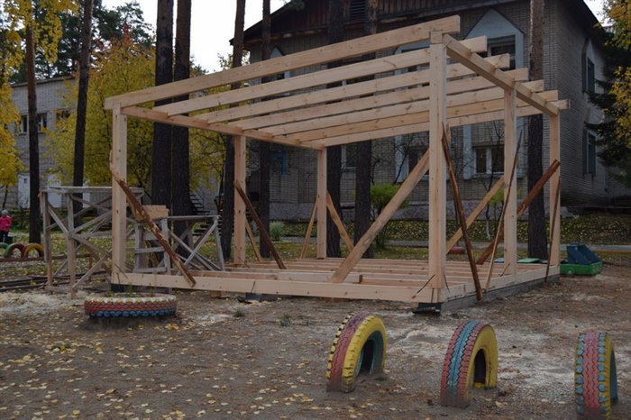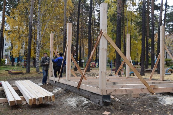 В рамках программы «Народные инициативы» в Саянске выполняются работы по устройству теневых навесов в детских садах № 35 «Радуга» и № 36 «Улыбка». Работы проводит местный подрядчик – фирма «Каскад». В настоящее время для установки теневых навесов подготовлен фундамент, выполняется монтаж каркасов.