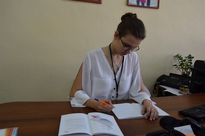 Ученица 11 «А» класса Дарья Григорьева сегодня была «завучем по учебной работе». Даша строго следила за расписанием уроков и поведением учеников.
