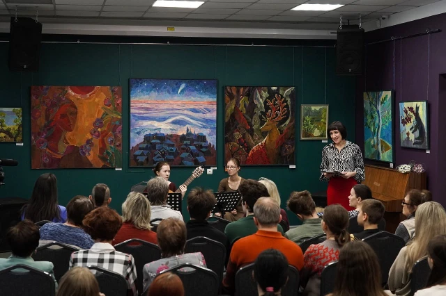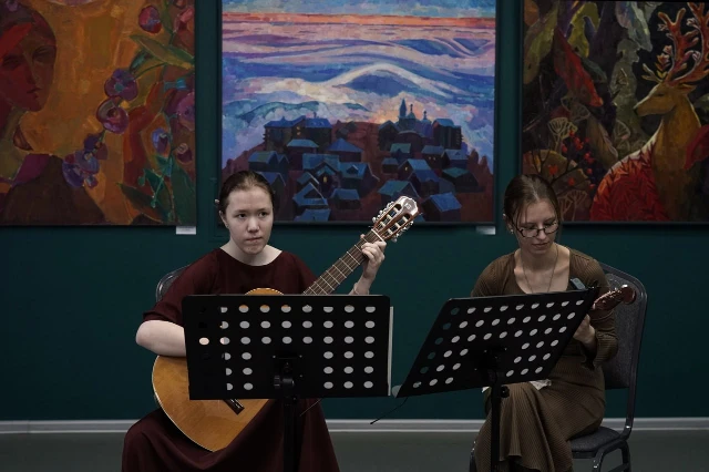 Мероприятие началось с выступления инструментального дуэта Василисы Колесниковой и Ульяны Капустиной. Затем сама художница рассказала гостям выставки, которыми стали ученики и педагоги Детской школы искусств, о своем творческом пути, а также провела для собравшихся увлекательную экскурсию.
