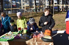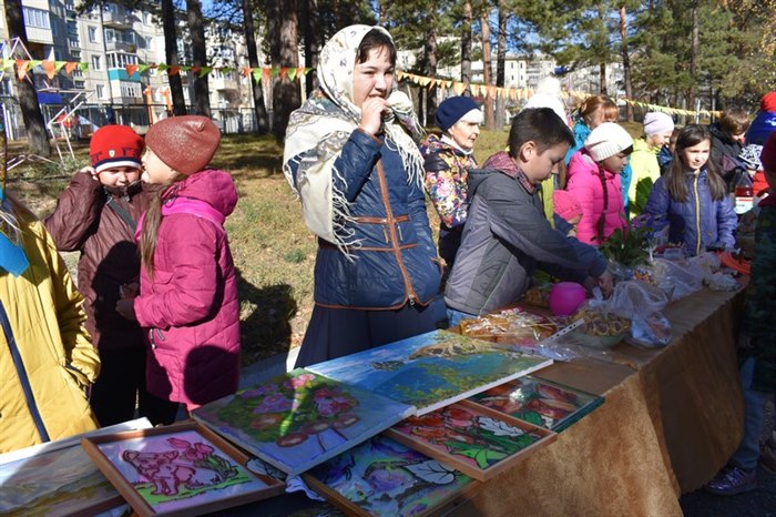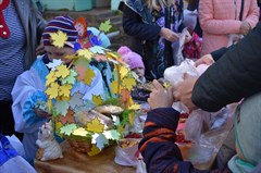 От осенних ярмарок, проводимых в школах и детских садах, она отличается размахом – здесь не только продают товар, но и разыгрывают праздничное действо с конкурсами и играми в духе народной старины. В ходе праздника ребята носили ведра с водой на коромыслах, перетягивали канат, «будили соню». А еще получали призы в беспроигрышной лотерее, участвовали в аукционе, лотами которого служили работы кружковцев.