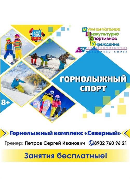 Для учебно-тренировочных занятий ЦФП "Мегаполис-спорт" приглашает детей и подростков в секцию горнолыжного спорта.
