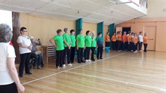 В зале ЦФП «Мегаполис-спорт» прошел очередной этап спартакиады для людей пожилого возраста – танцевальный флешмоб, в котором приняли участие четыре команды, представившие городской совет ветеранов, союз пенсионеров, общество инвалидов, совет ветеранов «Саянскхимпласта». Более пятидесяти человек слаженно и организованно выполняли танцевальные движения.