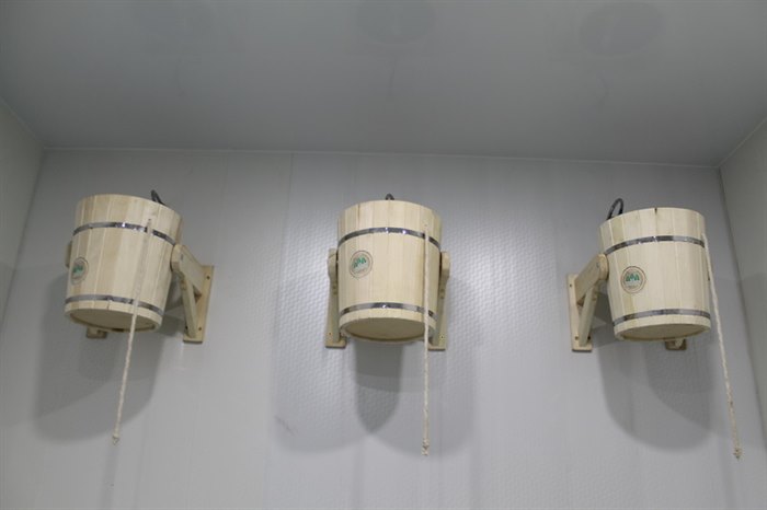 Таким образом, через две недели в бане будут работать два отделения, одно из них с бассейном. В каждом отделении – сауна и парилка. В отделениях будут столики для чаепитий и отдельные комнаты отдыха. Отделения оборудованы душевыми кабинками, а также ведерками для обливания.