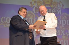 От имени мэра города были вручены благодарности наиболее отличившимся сотрудникам, несущим службу на территории Саянска. Накануне праздника стали известны имена победителей традиционных муниципальных конкурсов «Лучший сотрудник ОДН» и «Лучший участковый». В этом году лучшей сотрудницей отделения по делам несовершеннолетних стала Светлана Хацкевич. Лучшими участковыми стали сразу два саянских «Анискина» − участковые уполномоченные полиции Антон Кочарин и Артем Викторов. Кроме того, победителям конкурсов Олег Боровский вручил денежные премии в размере пятнадцати тысяч рублей.