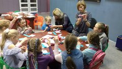 После выставки группа занялась изготовлением лоскутных бабочек с мастером Лилией Загнеткиной. Ребята не только трудились, создавая кукол, но и узнавали историю возникновения этих игрушек. Незаметно у каждого маленького создателя в руке оказалась разноцветная бабочка.