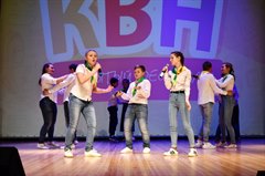 Таким вечер и оказался − со сцены звучало множество шуток, игроки часто заставляли зрителей смеяться и аплодировать. По классической фестивальной программе команды должны были представить визитную карточку. Но организаторы изменили традицию и включили еще один конкурс − музыкальную разминку.