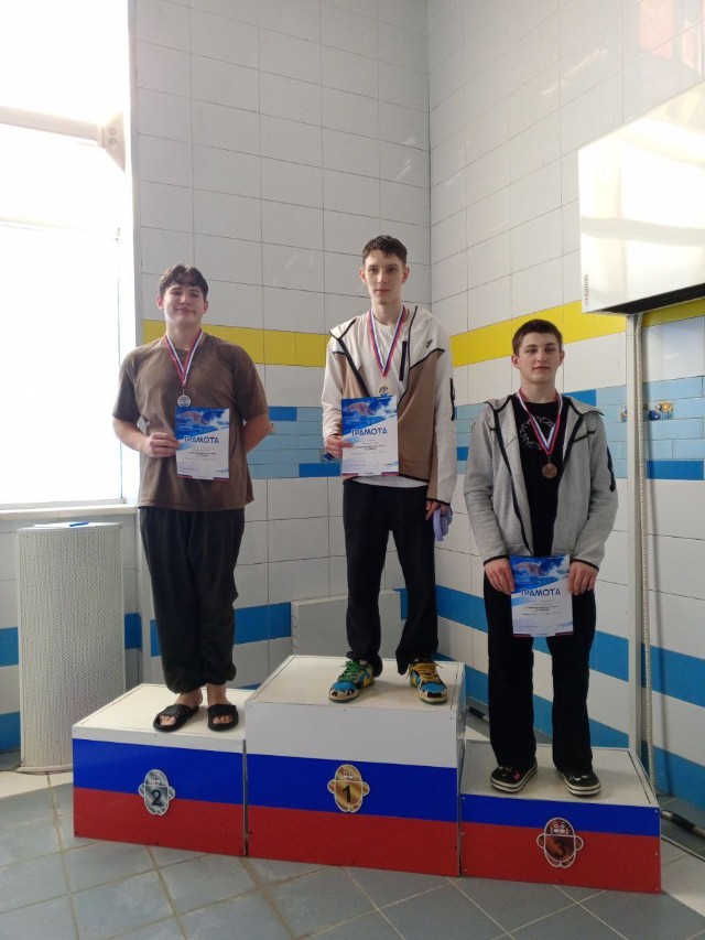 Рязанцева Дарья, Волошин Вадим, Михеев Владимир и Александров Артем в многоборье 100 метров комплексным плаванием и 50 метров брассом.