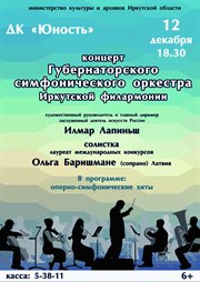 Иркутская Областная Филармония приглашает на концерт Губернаторского симфонического оркестра под управлением Заслуженного деятеля искусств России Илмара Лапиньша.