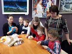 В выходные в Саянской картинной галерее прошла акция «Подарок маме». В мероприятии приняли участие педагоги дополнительного образования Детского дома творчества – Город мастеров (п. Куйтун), саянские педагоги и школьники (ученики 1, 7, 9 классов четвертой школы, 7 класса гимназии), малыши со своими мамами и бабушками. Все желающие могли посмотреть действующие выставки и своими руками приготовить подарок для самых дорогих и любимых из различных материалов и в разных техниках. С педагогом Татьяной Маталыга можно было поработать с тканью в технике Йо-Йо и создать браслет или украшение для волос, с Ярославой Блиновой – сделать красивую снежинку в технике Ндебеле, с Олесей Курган можно было сотворить целый букет цветов из капрона. Анастасия Кибисова предлагала поработать с фетром и сшить замечательный брелок-сердечко, а Инна Волкова занималась валянием из шерсти замечательных кукол-феечек. У старшеклассников пользовался спросом мастер-класс Людмилы Янышевой по работе с кожей, из которой можно было сделать брошь-цветок или подвеску. Более 80 человек смогли принять участие мастер-классах.