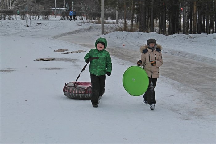Мороз детям не помеха. И в минус двадцать ребятня катается с горки. А на территории Снежного городка приступили к новогодним приготовлениям.