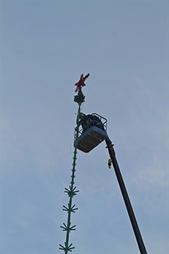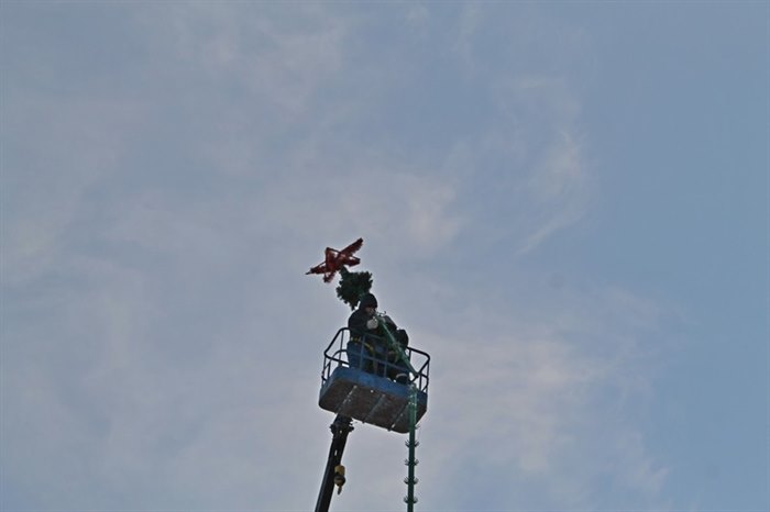 Как рассказала начальник Управления культуры Светлана Каплина, эскизный проект новогоднего убранства готовила творческая группа сотрудников учреждений культуры города с участием Андрея Пылюха, руководителя команды мастеров, которые занимаются изготовлением новогоднего убранства площадки Снежного городка. Сам Андрей Пылюх из Байкальска. Бригада под его руководством готовила в Саянске ледовый городок в 2015 и 2016 годах.