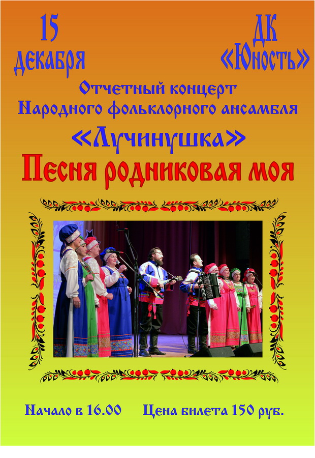 15 декабря – отчетный концерт Народного фольклорного ансамбля "Лучинушка"