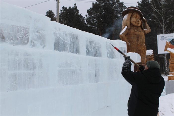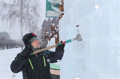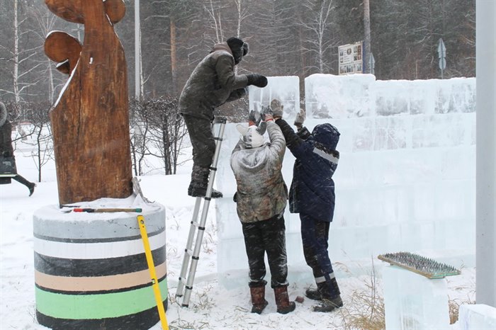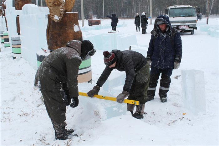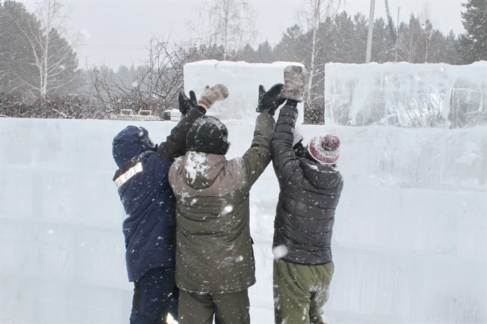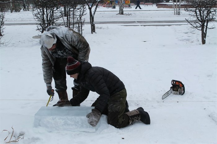 Строят ледяную сказку. В субботу на площадку Снежного городка завезли первую партию льда, а во вторник здесь уже заметно выросли ледяные стены. Команда мастера из Байкальска Андрея Пылюха дружно работает, чтобы создать саянцам праздник. В работе также принимает участие саянский художник Николай Скареднев. Он в этом году будет вырезать фигуры Деда Мороза и Снегурочки.