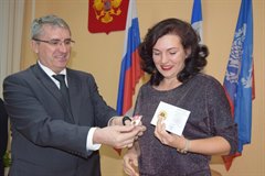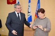 Еще одно событие в рамках празднования 25-летия принятия Конституции РФ состоялось сегодня в зале заседаний городской администрации. Здесь вручали значки ГТО. Как отметила начальник отдела по физической культуре, спорту и молодежной политике Маргарита Кузнецова, саянцы в течение двух лет сдают нормативы. Сегодня планировалось вручить 17 значков, однако значки получили не все. Кто-то из обладателей знака "Готов к труду и обороне" уже уехал из города, к примеру, стал студентом. За таких смельчаков на церемонию награждения пришли родители. Вместе со значками ГТО заместитель мэра по социальной работе Александр Ермаков вручил активистам брошюры Конституции. "Спасибо, что участвовали в этом общественном спортивном событии", – сказал Александр Владимирович. От имени мэра Саянска Олега Боровского он пожелал всем здоровья, успехов на спортивном поприще. Среди тех, кто получил золотые значки оказались жительницы Саянска пенсионерка Татьяна Базылева и сотрудник саянского благотворительного фонд местного сообщества Лариса Синицына. Обладательницы "золота" рассказали, что сдать нормативы ГТО им помогли занятия спортом и здоровый образ жизни.