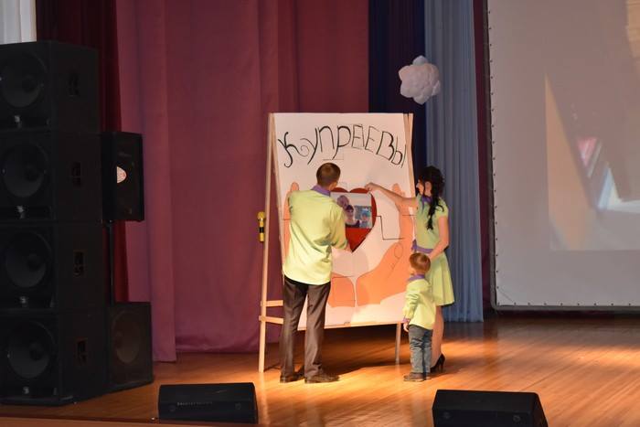 − фестиваль молодых семей с таким названием прошел сегодня в ДК "Юность", организованный отделом по физкультуре, спорту и молодежной политике совместно с ДК "Юность". Заявить себе, своих интересах, традициях, хобби решились пять семей. На конкурсную сцену вышли Дмитрий, Ирина и сын Сергей Купреевы; Алексей, Ирина и их дети: Руслан, София, Иван Лунины; Евгений, Анастасия, дочь Варвара Кузнецовы; Виктор, Любовь, сын Егор Полетаевы; Анастасия, Павел, дети − Андрей и Анжела Бранчуковы.