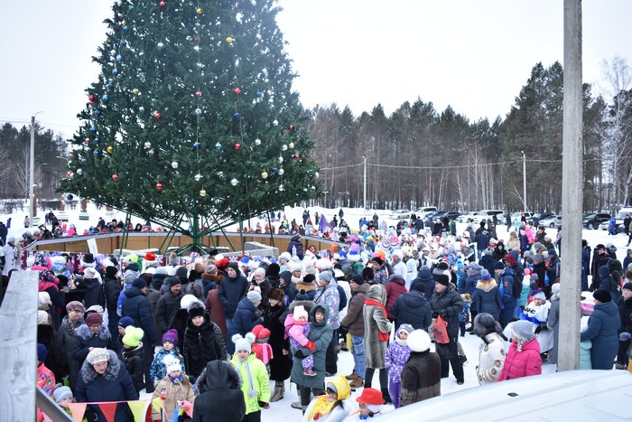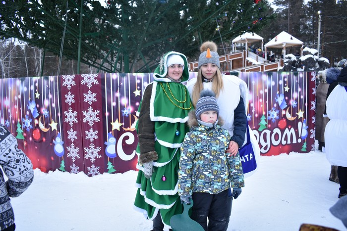 Дед Мороз со Снегурочкой, снеговиками и гостями праздника водили хороводы вокруг елки, Хорошее настроение создавали творческие коллективы ДК "Юность" − Снежный городок открыт для веселья и зимних забав.