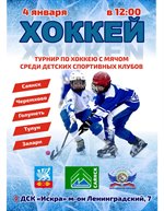 Турнир по хоккею с мячом среди детских спортивных клубов состоится 4 января в 12:00 на корте детского спортивного клуба "Искра". В турнире примут участие команды: Саянска, Черемхова, Голумети, Тулуна и Заларей.