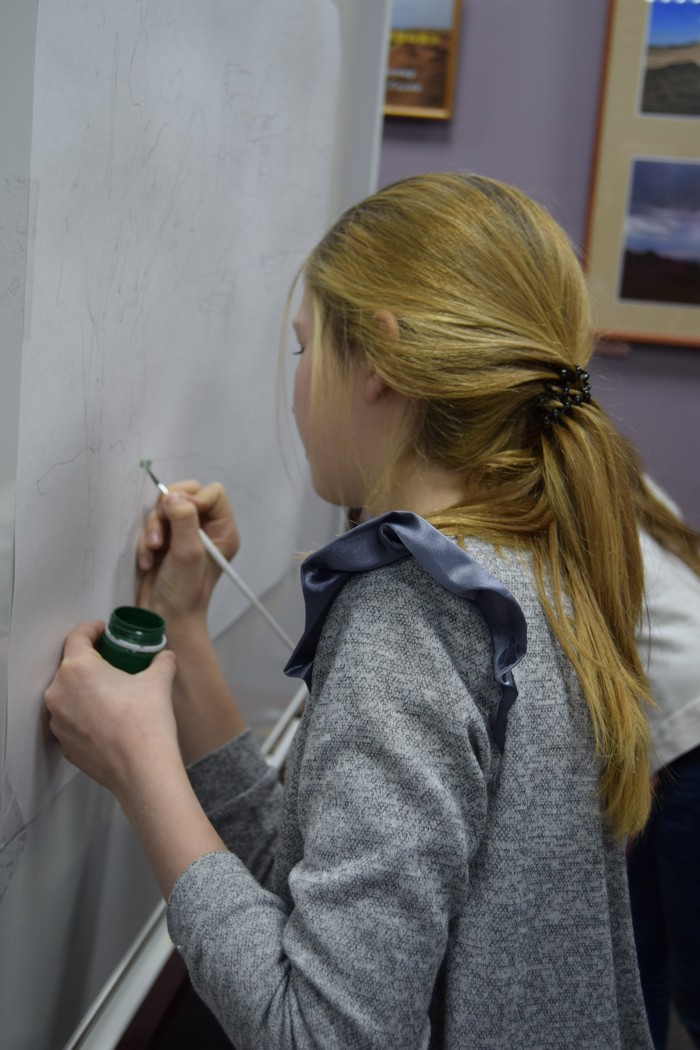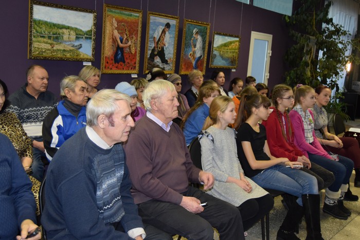 Поздравить художника со знаменательным событием пришли друзья и родственники, ученики и педагоги детской художественной школы. Вечер завершился неожиданным подарком от автора экспозиции. По наброскам, оставленным Георгием Рютиным, на двух больших полотнах ребята смогли нарисовать два коллективных пейзажа, тем самым пройдя мастер-класс от саянского Васнецова.