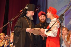 За большой вклад, усердные труды во славу Русской православной церкви епископ вручил министру образования Валентине Перегудовой архиерейскую грамоту.