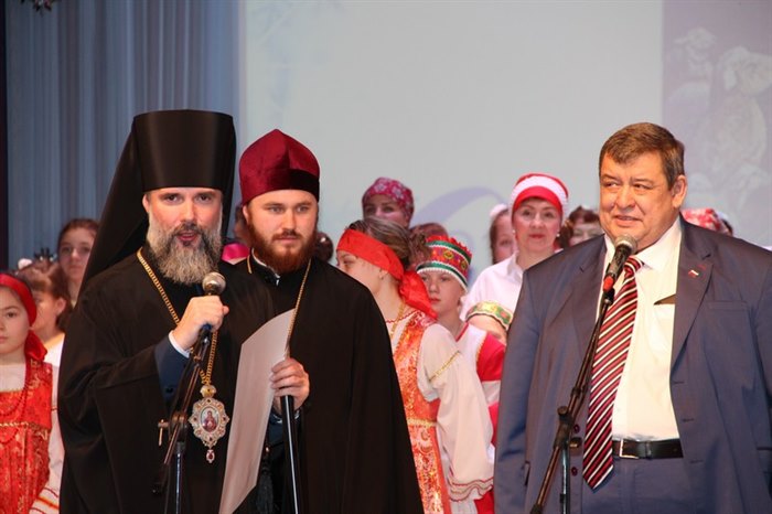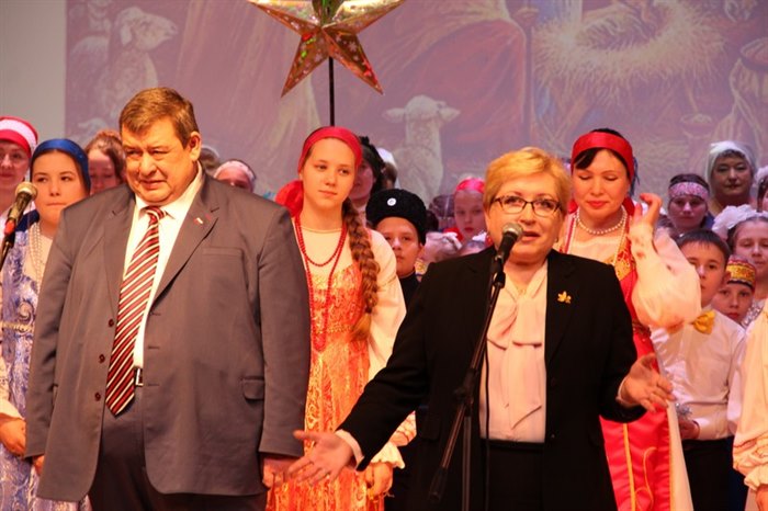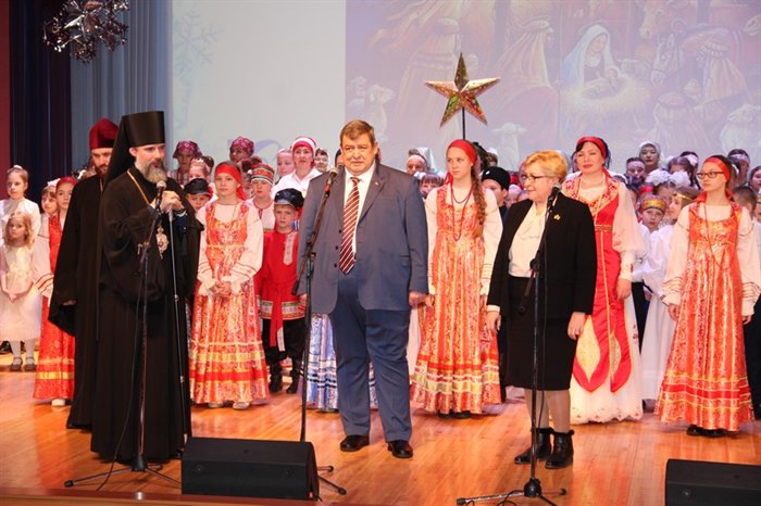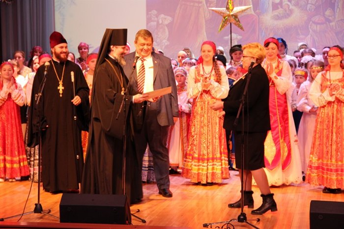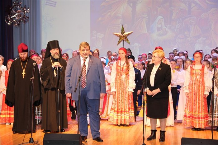 Участников фестиваля «Славим Рождество Христово» приветствовали министр образования Иркутской области Валентина Перегудова, мэр города Саянска Олег Боровский и епископ Саянский и Нижнеудинский Алексий.