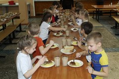 После второго урока в столовую пришли ученики первых-третьих классов. В меню горячего питания – биточки говяжьи с картофельным пюре, печенье и сладкий чай с молоком. Ребята организованно вымыли руки и дружно приступили к еде. Сказали: «вкусно». На этой перемене в столовую пришел и общественный контроль – старшеклассники, которые входят в комиссию от общественного совета. Попробовав, подтвердили что вкусно и сытно.