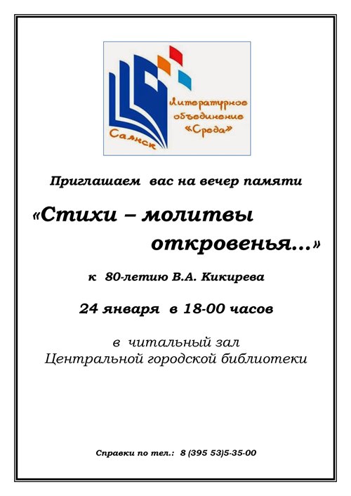 В Саянск приехал в 1994 г., когда пошел на заслуженный отдых. С его творчеством читатели знакомились через публикации стихов в местных периодических изданиях. Вадим Кикирев участвовал в заседаниях литературного объединения «Среда», проводились его творческие вечера.