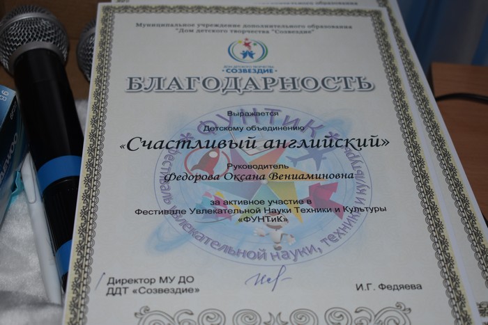 В Доме детского творчества состоялось мероприятие, завершающее десятидневный фестиваль увлекательной науки, техники и культуры (ФУНТиК). Маленьких зрителей вновь приветствовали профессор Фокус-Покус и поросенок Фунтик. Вместе с ребятами они вспомнили самые яркие моменты фестиваля, а ими был наполнен каждый его день. Посещая тематические программы, юные саянцы познакомились с творчеством поэта Александра Пушкина, научились танцевать, мастерить роботов, узнали о видах современного оружия, разучили русские народные игры и многое другое.