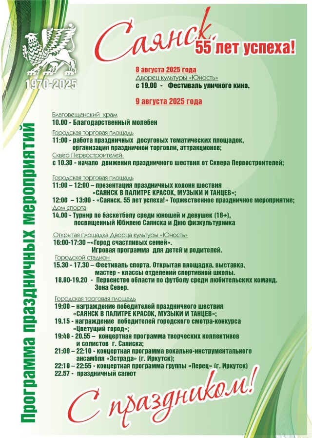 Программа праздничных мероприятий на День города