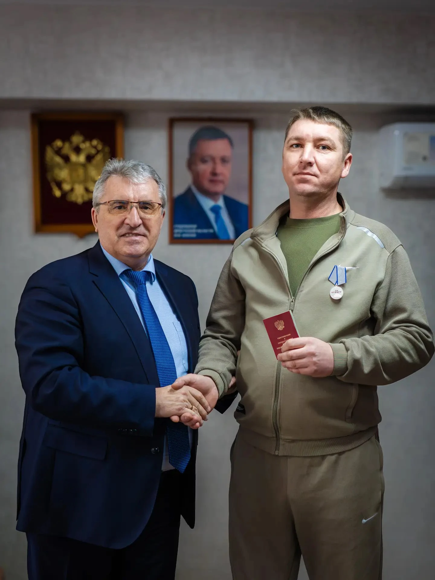 Мэр Александр Ермаков передал Ивану Старостину медаль За Отвагу». Боевой путь воина закончен, сейчас он живет и работает в Саянске.