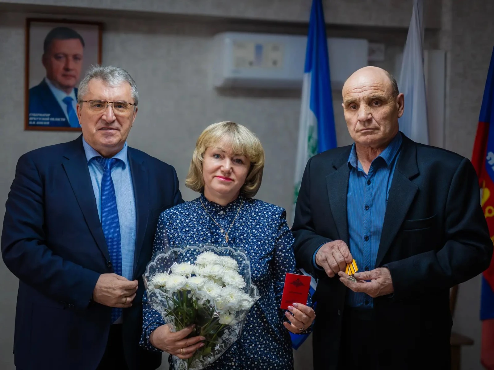Андрей Романов стал кавалером ордена Мужества. Евгений Поздняков и Дмитрий Циглинцев удостоены медалей «За боевые отличия». Награды и удостоверения к ним мэр Саянска вручил родным погибших.