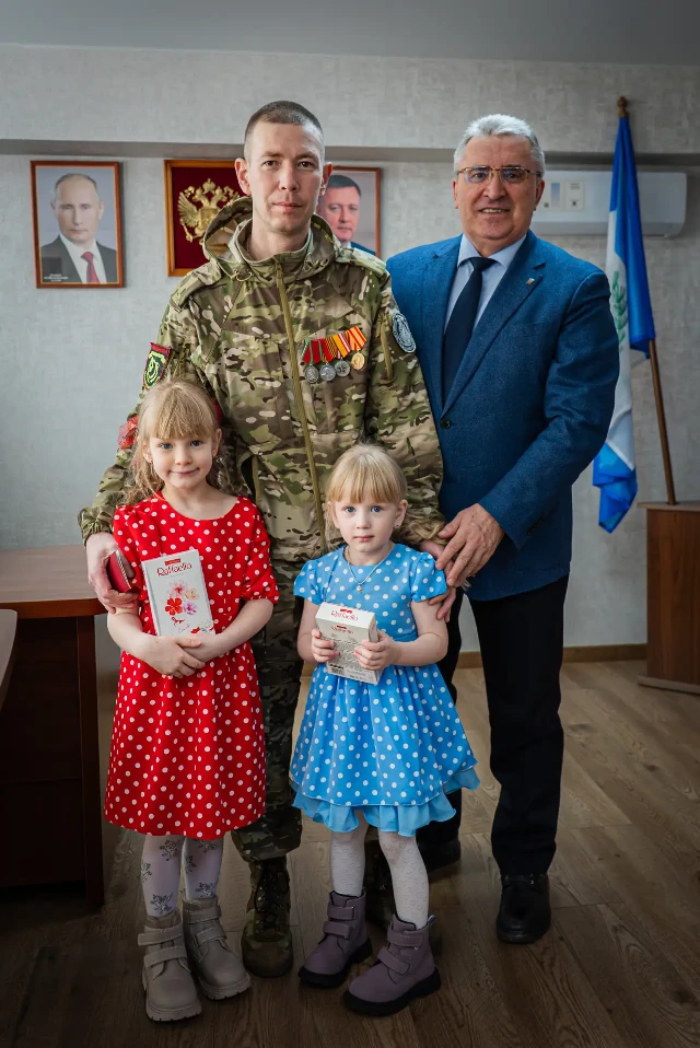 Вручение заслуженных боевых наград саянцам — участникам СВО состоялось вчера, 30 марта, в городской администрации.