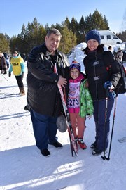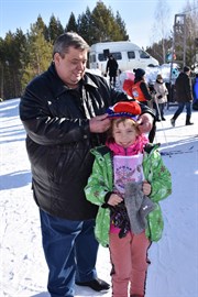 Самым юным лыжником в соревнованиях стал четырехлетний Даниил Балабанов. А самой быстрой в этой возрастной группе оказалась семилетняя Маша Брыжова. Она первая пришла к финишу – Олег Валерьевич поздравил победительницу и вручил ей шапочку с символикой спортивного праздника.