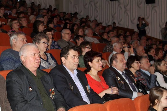 В ДК «Юность» прошла праздничная программа, посвященная Дню защитников Отечества. В числе тех, кто пришел в этот вечер в зал, были ветераны Великой Отечественной войны, участники локальных военных действий, ликвидаторы техногенных катастроф, полицейские, военнослужащие и будущее российской армии – юнармейцы.
