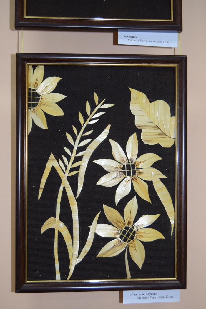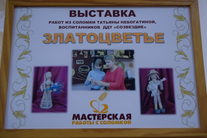 В музее истории города открылась выставка работ из соломки «Златоцветье». На вернисаже представлены работы руководителя детского объединения «Мастерская «Работа с соломкой» Дома детского творчества «Созвездие» Татьяны Небогатиной и ее учеников. Среди экспонатов есть изделия, выполненные Ксенией Каторовой – юным виртуозом, победительницей всероссийских и международных конкурсов.