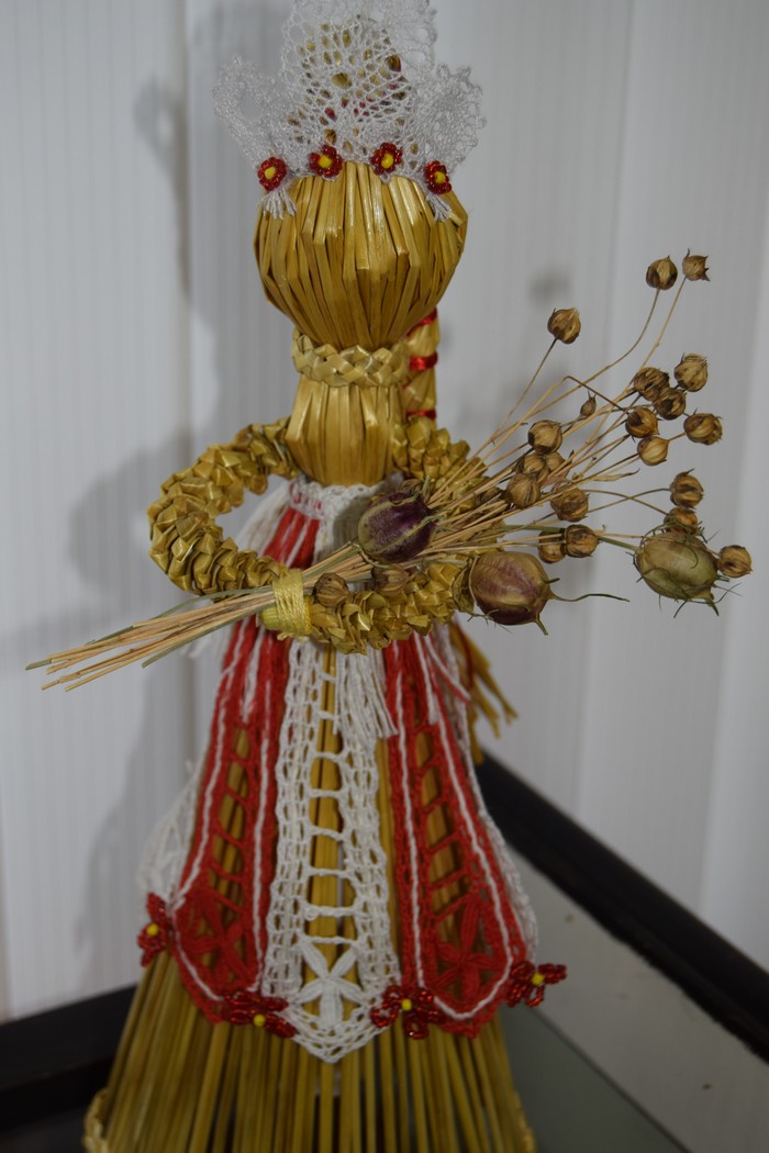 Открытие выставки прошло в торжественной обстановке. Мероприятие началось со встречи гостей традиционным русским караваем. Ведущая вечера – специалист музея Наталья Астраханцева познакомила посетителей вернисажа с творчеством мастерской. К примеру, некоторые работы, такие, как композиция «Русские красавицы» выполнены не только из природного материала – соломки. Для особенности и красоты в изделия добавлены кружево и бисер. Широтой русской души, мастерством впечатляет коллективная композиция – «У самовара». Невольно приковывают взгляд зрителя золотистые ангелы. Словом, посмотреть есть на что.