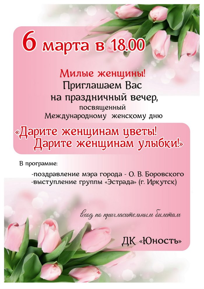 6 марта - праздничный вечер "Дарите женщинам цветы, дарите женщинам улыбки"