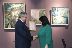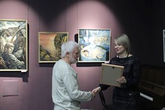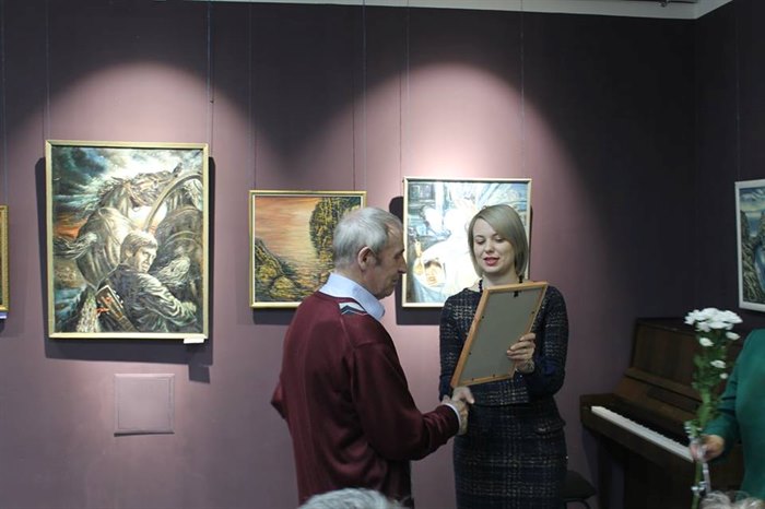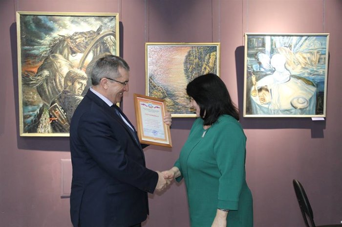 От имени мэра города Олега Боровского обратился со словами поздравления и вручил сертификат на 40 тысяч рублей на приобретение рам для художественных работ заместитель мэра по социальным вопросам Александр Ермаков.