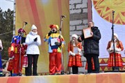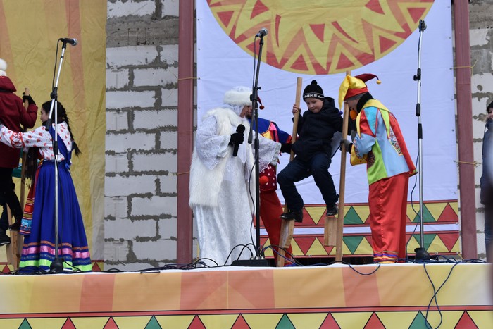 Сегодня саянцы весело и с размахом отметили праздник Масленицы. Зима решила показать свой норов, засыпав все снегом, но горожан плохая погода не испугала. Громкая музыка, дымок от мангалов с шашлыками, торговые ряды со сладостями, детские аттракционы привлекали людей на площадь Снежного городка. С праздником саянцев поздравил заместитель мэра Александр Ермаков. Александр Владимирович пожелал всем здоровья, весеннего настроения. Он вручил благодарности руководителям служб, предприятий и предпринимателям, оказавшим помощь в организации и проведении праздника. А на площади разгулялась Масленица: на детской зоне ДДТ "Созвездие" организовал многочисленные конкурсы. Мальчишки и девчонки перетягивали канат, прыгали в мешках, ходили на ходулях и бились подушками. На сцене скоморохи для желающих проводили веселые конкурсы. Непременный атрибут весеннего праздника – масленичный столб – в этом году долго не хотел никому покоряться. Только немногие ловкачи смогли подняться на вершину за подарками. Концертные номера дарили творческие коллективы ДК "Юность", коррекционной школы-интерната.