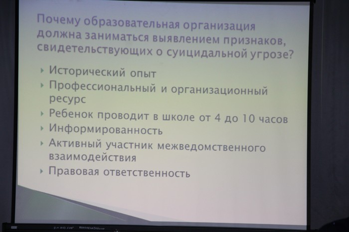 Специалисты центра профилактики, реабилитации и коррекции провели консультирование родителей по данной теме, семинар для педагогических работников и директоров образовательных учреждений. Они дали практические рекомендации по ведению профилактической работы с подростками, привели примеры наиболее часто встречающихся суицидальных маркеров и рассказали о способах выхода из сложных ситуаций. Подробнее о проблеме подросткового суицида – в ближайшем номере газета «Саянские зори».