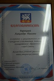 Педагог Саши Бирюковой – Марианна Замалутдинова поздравила ученицу с радостным событием. Перед зрителями, пришедшими на открытие выставки, она перечислила заслуги Александры. Девушка, которой в этом году исполнилось 18 лет, является выпускницей гимназии. Она – победительница многочисленных конкурсов, в том числе международных, стипендиат мэра.